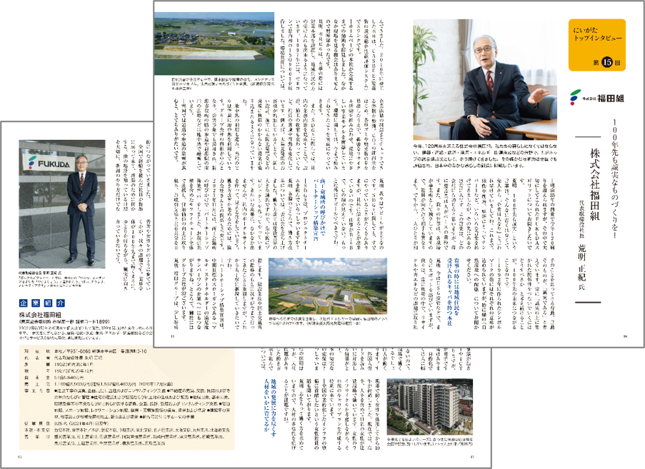 当社広報誌「ON -オン-」にて、「にいがたトップインタビュー」と題し、毎号、新潟県内に本社や主力工場等のある上場企業経営者の方へのインタビュー記事を掲載しています。